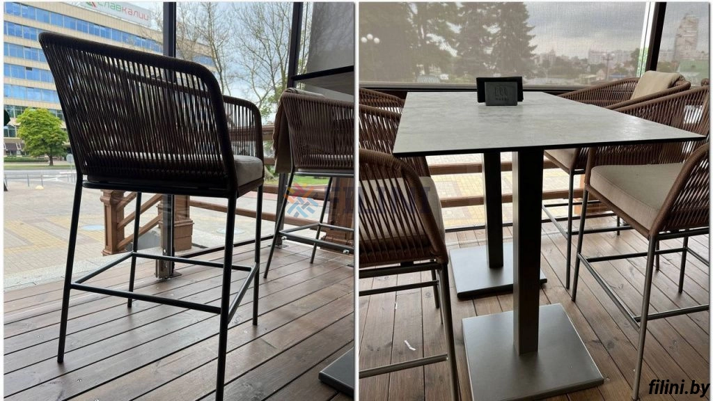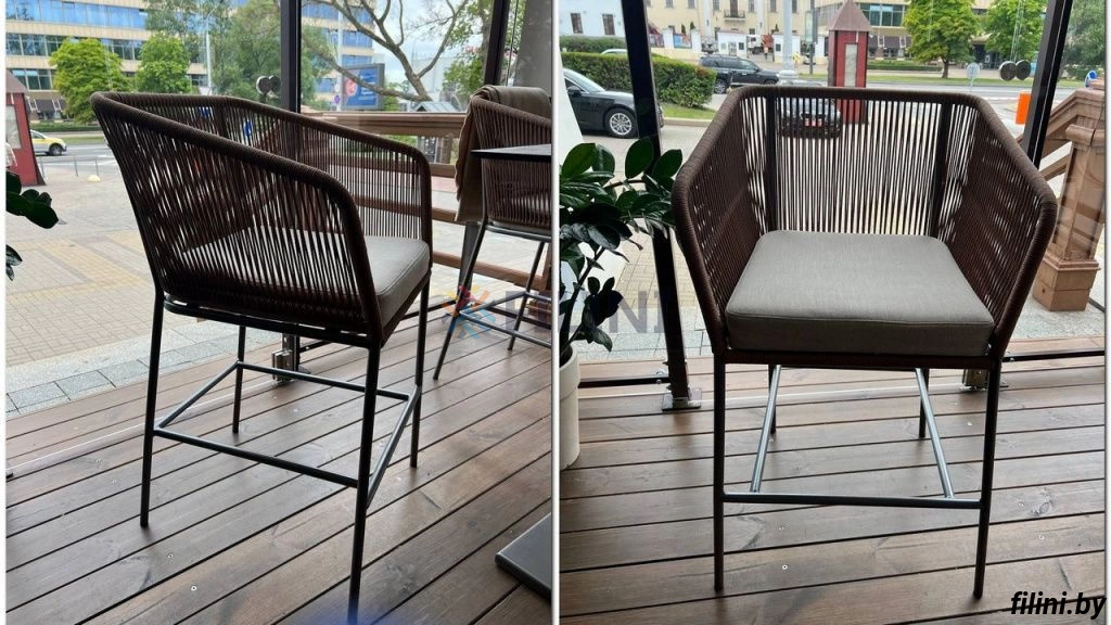 Плетеный полубарный и барный стул "Ирис" на металлическом каркасе.