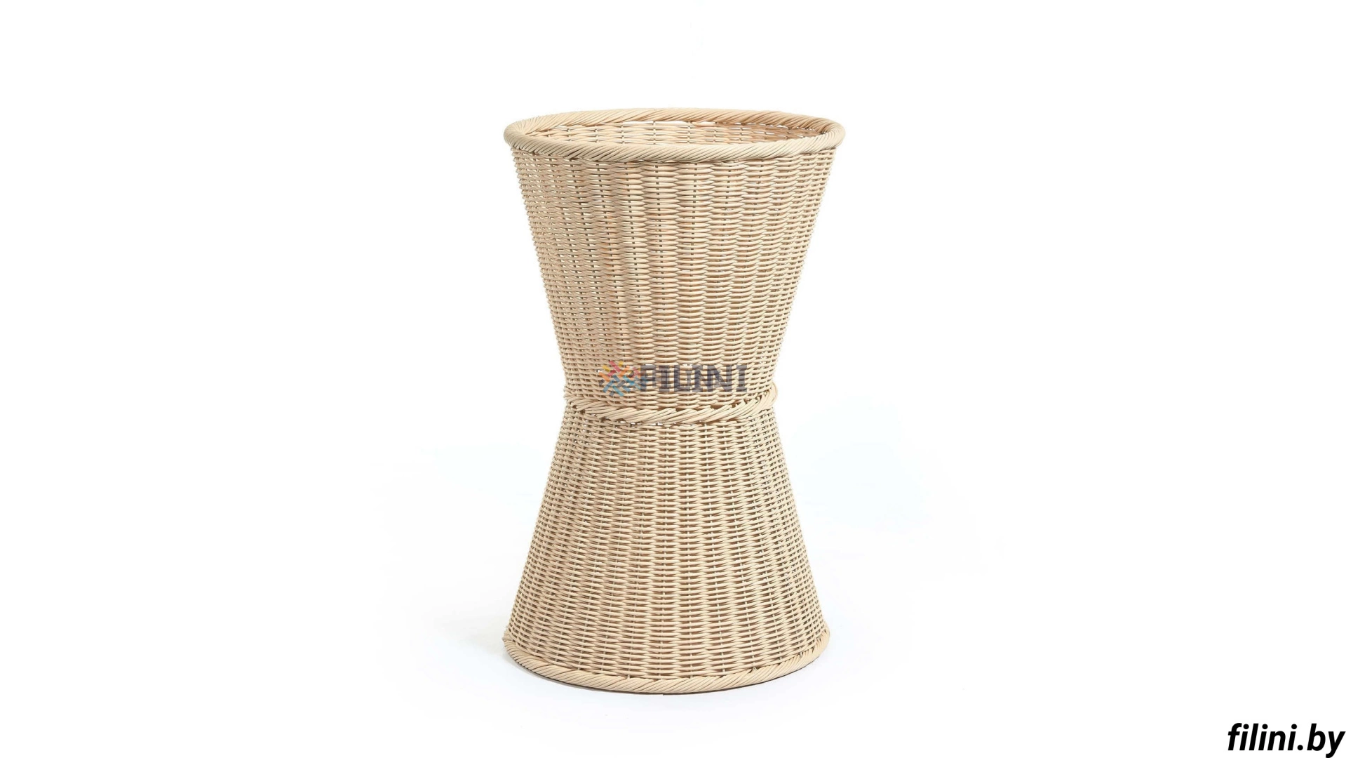 Плетеное кашпо для цветов и непищевых продуктов из искусственного ротанга на металлическом каркасе. Необходимые размеры и выбор цветовой гаммы осуществляются при совершении заказа.