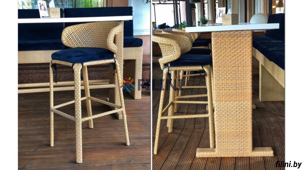 барный стул "Мерит"Материал плетения - искусственный ротанг.Габаритная ширина, см - 58. Габаритная глубина, см - 64. Габаритная высота, см - 110. Высота посадки, см - 80. |