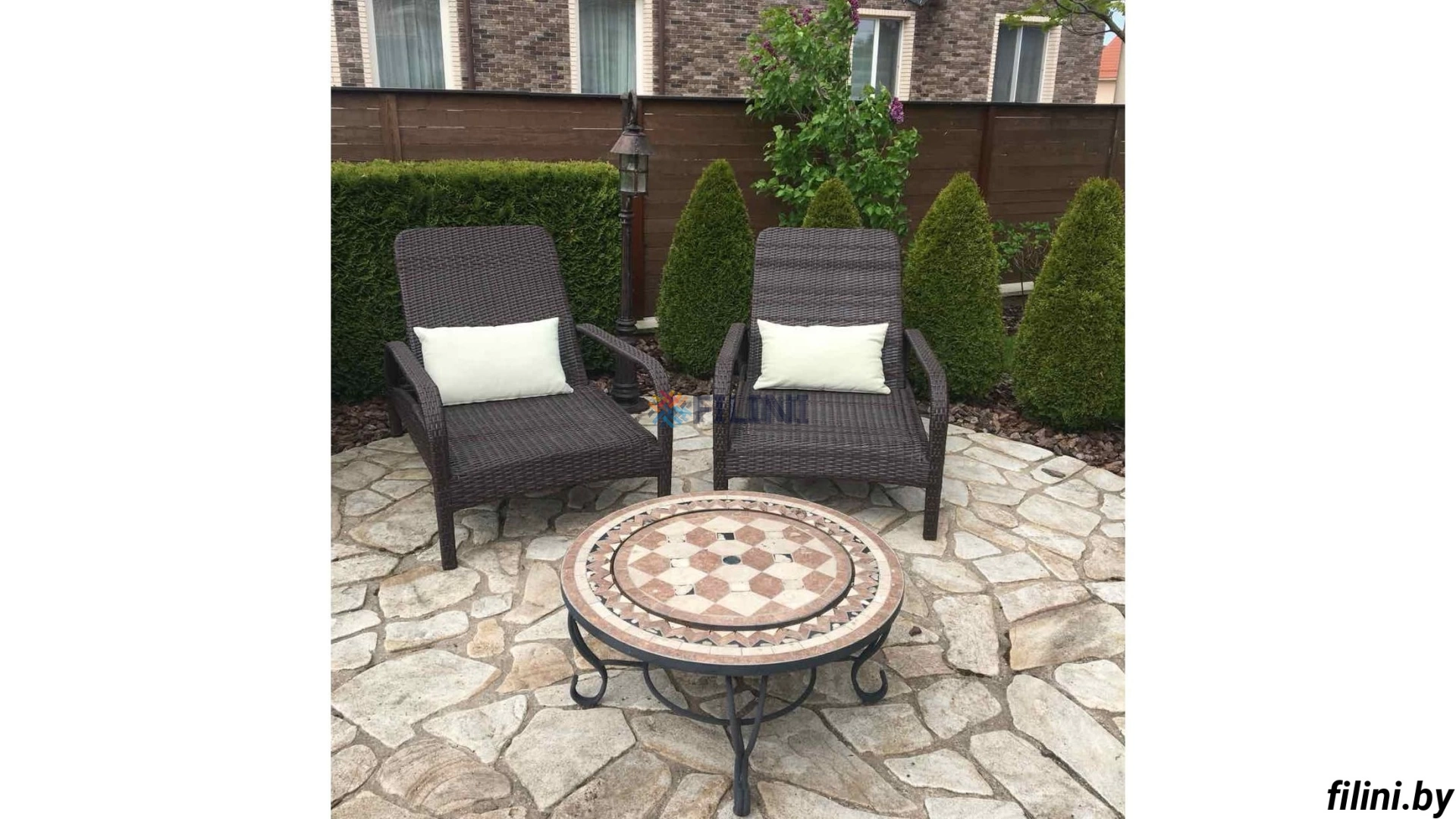 Плетение из искусственного ротанга, способно выдерживать большую весовую нагрузку, не подвержено выгоранию или потрескиванию под воздействием ультрафиолетового излучения и великолепно переносит любые погодные условия и перепады температуры воздуха.